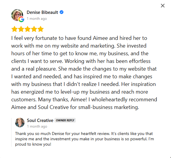 At Soul Creative by Aimee, I believe every website should tell a story—your story. A great design captures attention, but it’s the blend of beauty, strategy, and soul that makes your brand unforgettable. I combine creative, responsive web design with smart SEO to ensure your site not only looks amazing but also reaches the people who need what you offer. Whether you’re ready for a fresh new build or a thoughtful refresh on WordPress, Wix, Squarespace, or Kajabi, I’ll craft an online home that feels authentic, shares your unique voice, and helps your business grow with clarity and confidence.